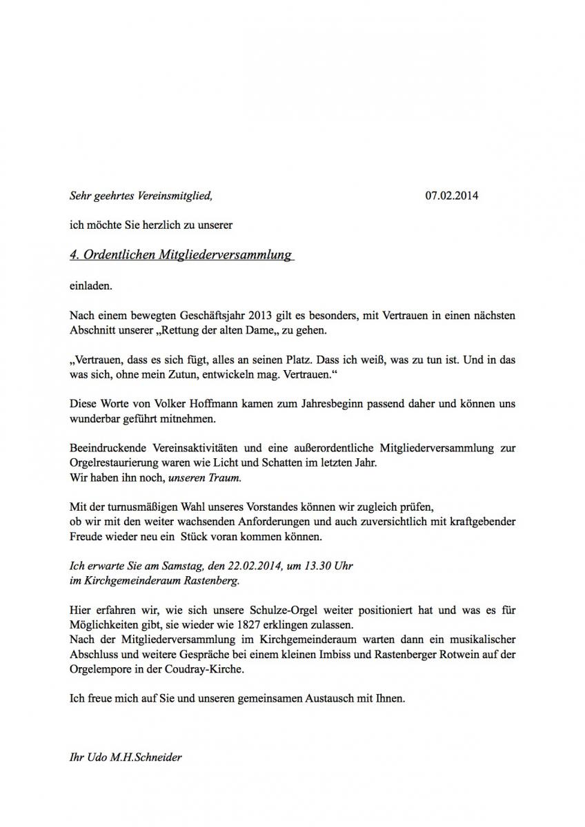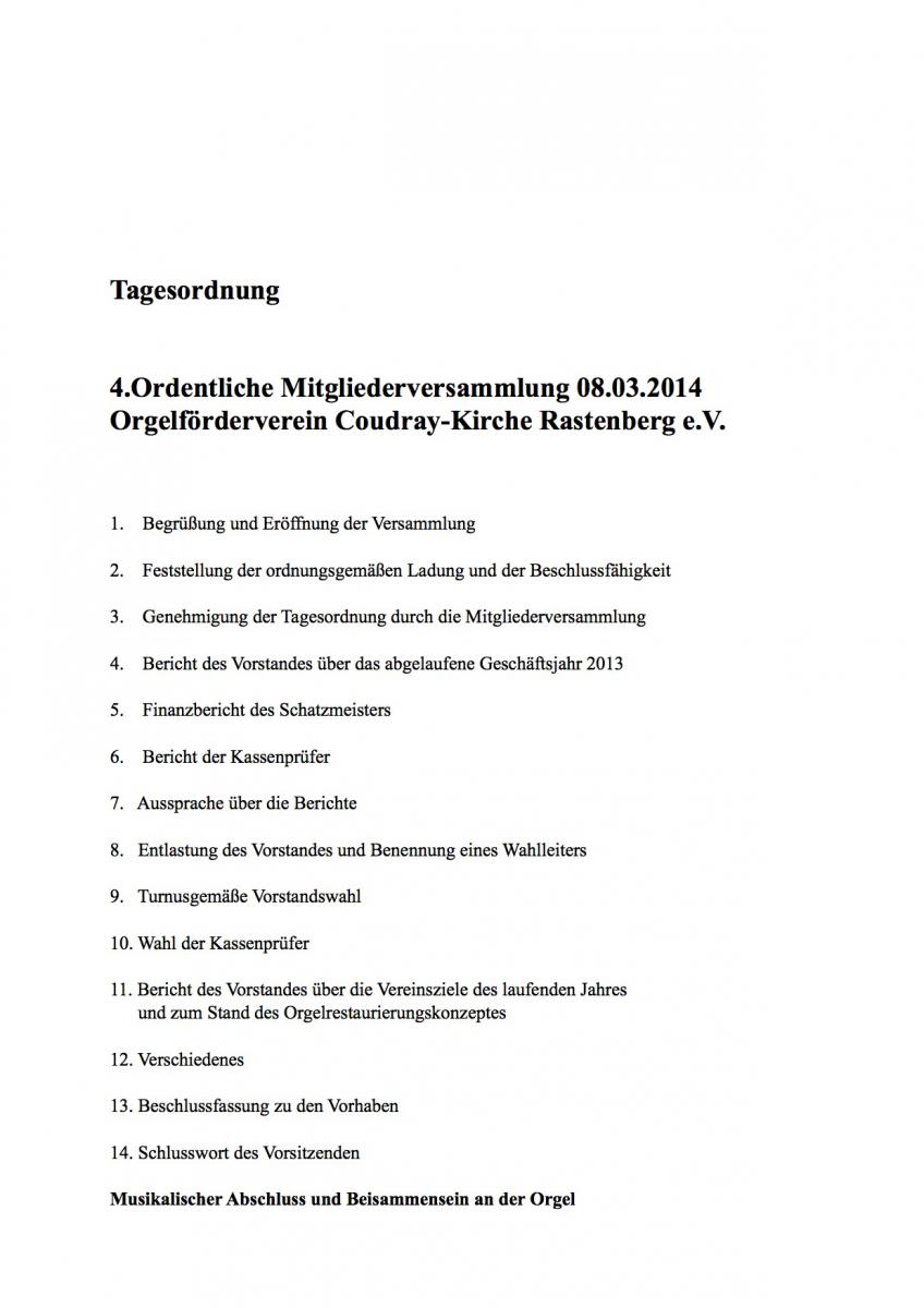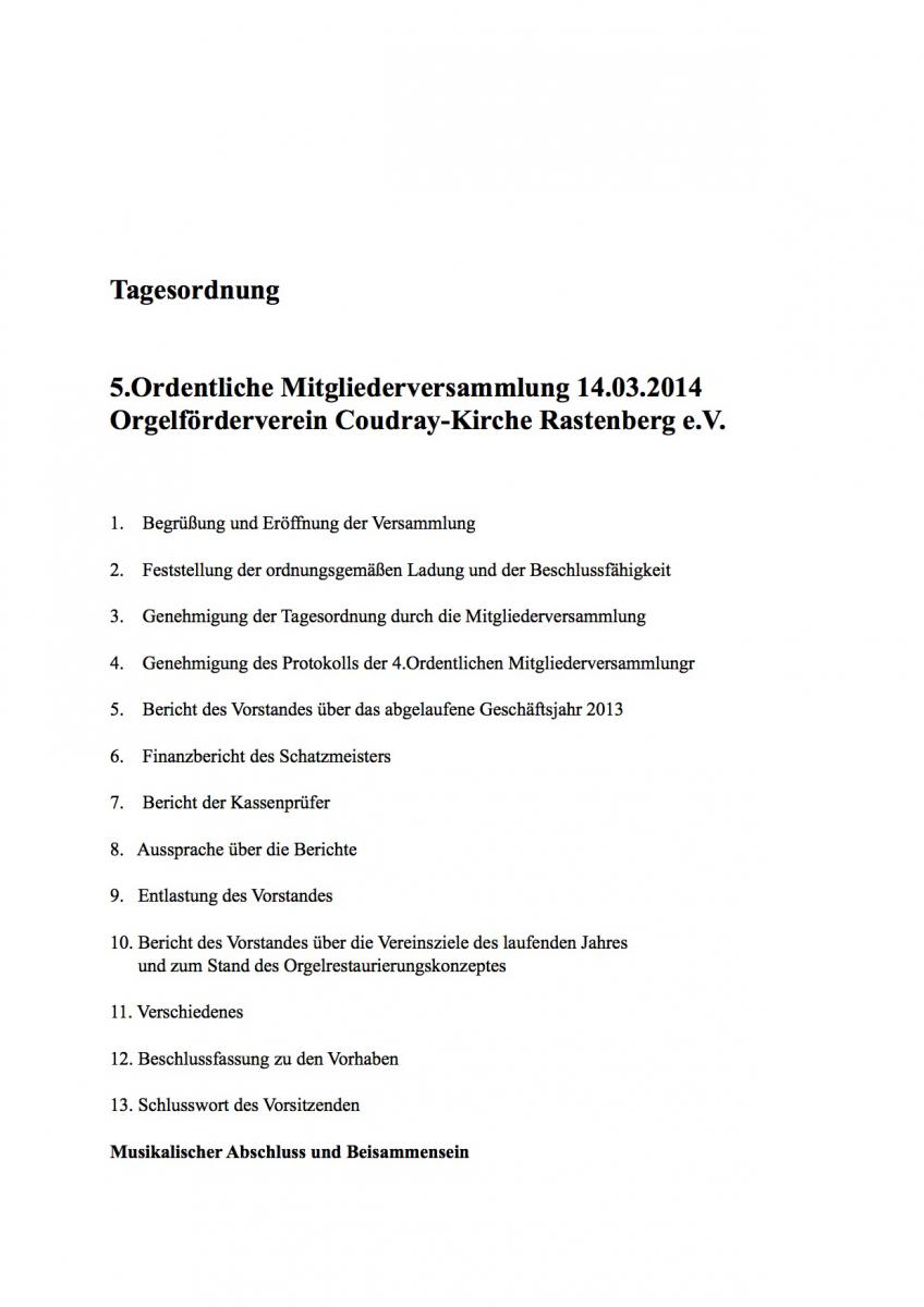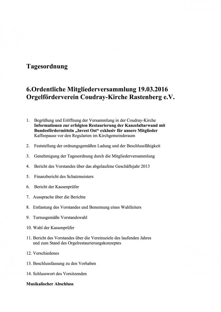 Am 25.03.2017 findet um 14.00 Uhr im Kirchgemeindenraum Rastenberg die 5. Mitgliederversammlung in Rastenberg statt.