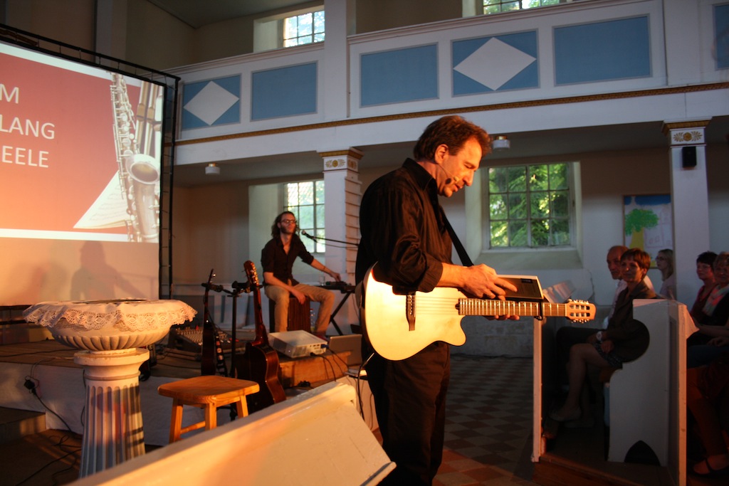 Viele der Zuhörer ließen sich von der Musik mitreißen und wurden selbst zu einem großen Chor. Bittlinger verstand es mit seinem Kommentaren und vorgetragenen Texten, die Wünsche, Hoffnungen und Freuden des Einzelnen darzustellen und über die begleitende Orgel- und Saxophonmusik von David Plüss und Matthias Doersam an die Anwesenden zu transportieren. (mehr Informationen über www.clemens-bittlinger.de)