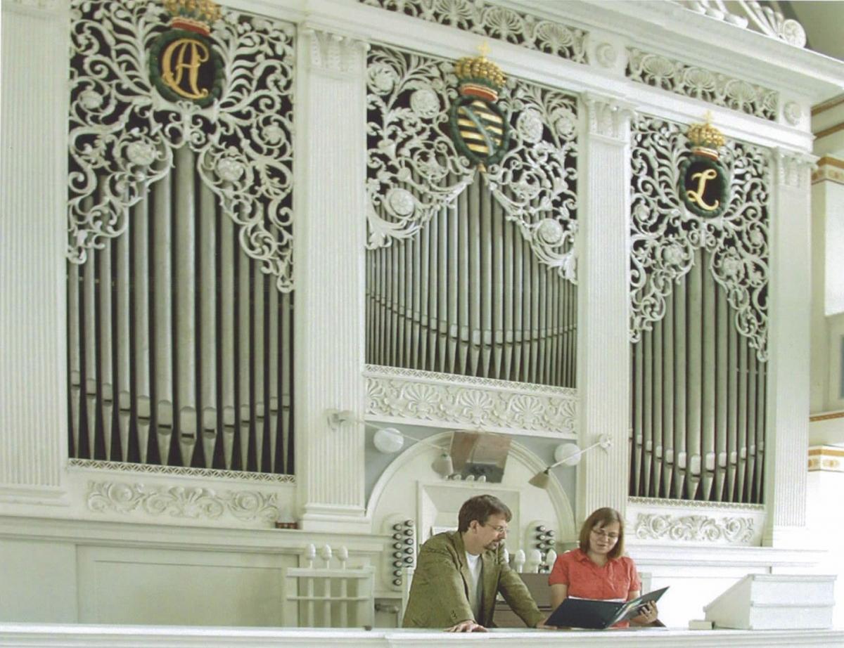 In das Spiel auf der gut 180 Jahre alten Orgel mischt sich so mancher Heuler. Und manchmal kommt bei einem bestimmten Ton nur heiße Luft statt ein schöner Klang. Das ist nicht nur für das musikalisch geschulte Ohr von Kantorin Carolin Bergann vernehmbar. "Etliche Register sind nicht mehr nutzbar, der Posaunenbass fehlt gänzlich", nennt die Kantorin einige der "Krankheiten", an der die Orgel leidet. "Und von der schadhaften Decke über der Orgel bröckelt Putz in und zwischen die Pfeifen", ergänzt Pfarrer Christian Plötner.