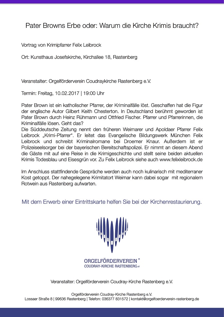 Ein Kirminalabend mit Krimi-Pfarrer und Buch-Entertainer Felix Leibrock.